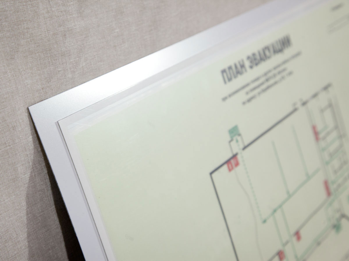 План эвакуации на фотолюминесцентной бумаге «Стандарт» в кармане на подложке из металла.
